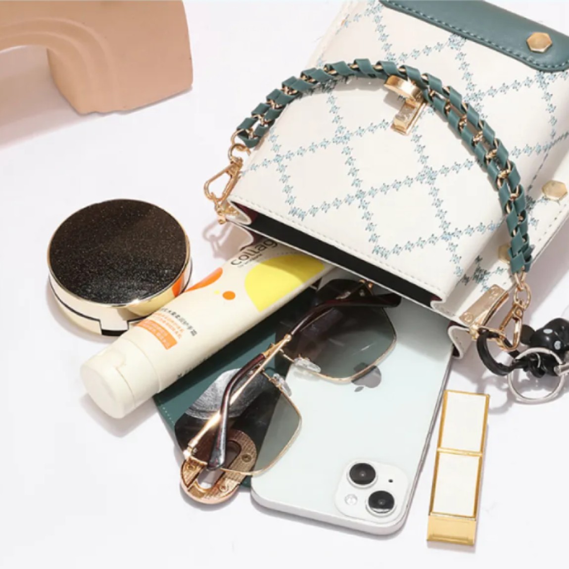 A Bolsa Verde Crossbody Feminina de Grife com Estampa Quadriculada é a peça perfeita para a mulher confiante e estilosa que valoriza a qualidade e o design sofisticado. Com um tom de verde vibrante e uma estampa quadriculada única, essa bolsa é um verdadeiro statement de moda.