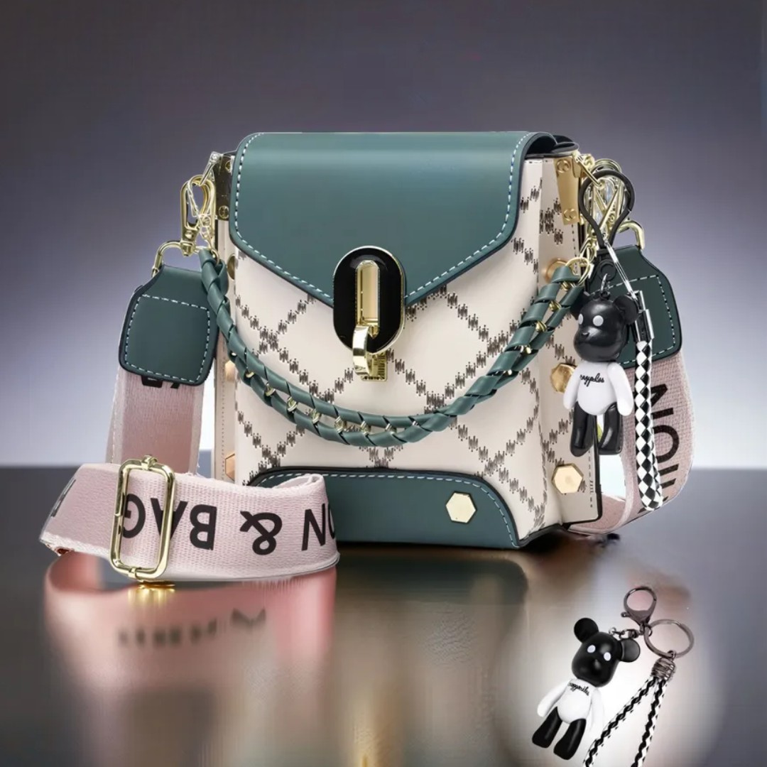 Bolsa Verde Crossbody Feminina de Grife Estampa Quadriculada
