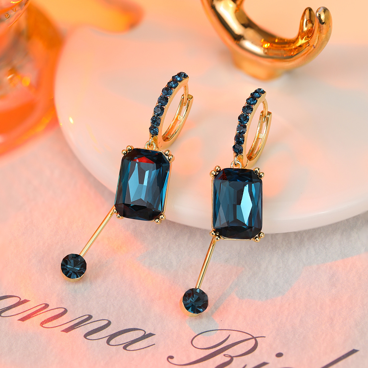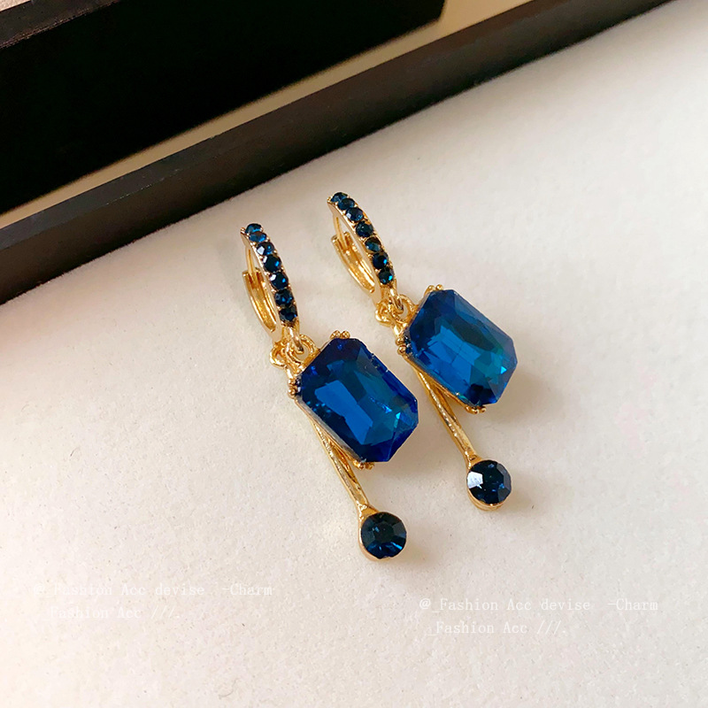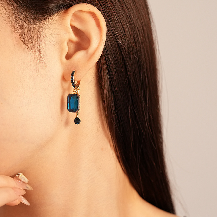 Brinco azul de festa de cristal quadrado e pingente