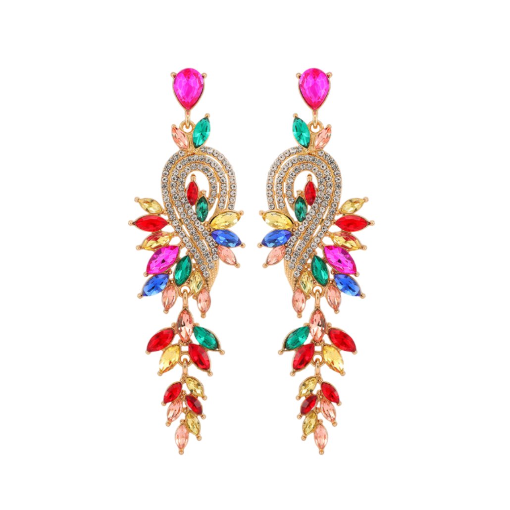 Este Maxi Brinco Colorido de Festa em tons de rosa e verde, adornado com cristais…