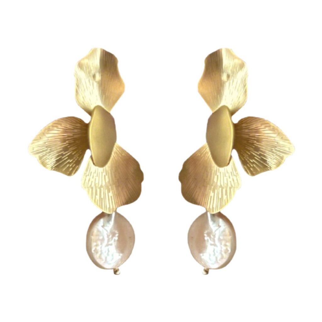 As pétalas douradas trazem um brilho sutil e um charme único, enquanto a pérola elegante adiciona um toque clássico e atemporal. A combinação perfeita entre o moderno e o tradicional, este brinco é ideal para ocasiões especiais e festas ao ar livre, onde você deseja se destacar e impressionar.