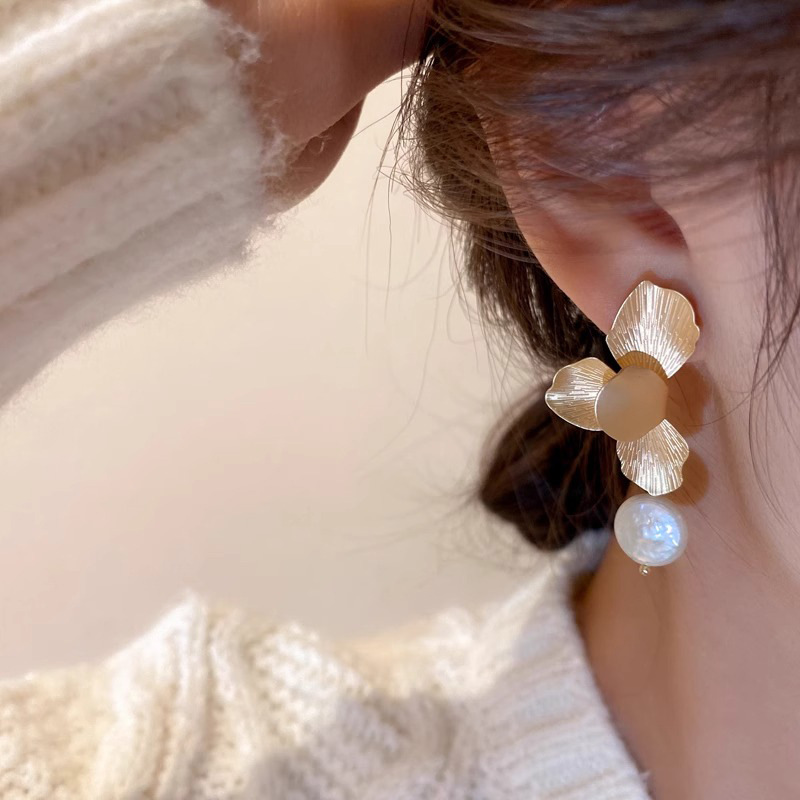 Brinco de Pétala Dourada e Pérola Elegante Para Festa ao Ar Livre