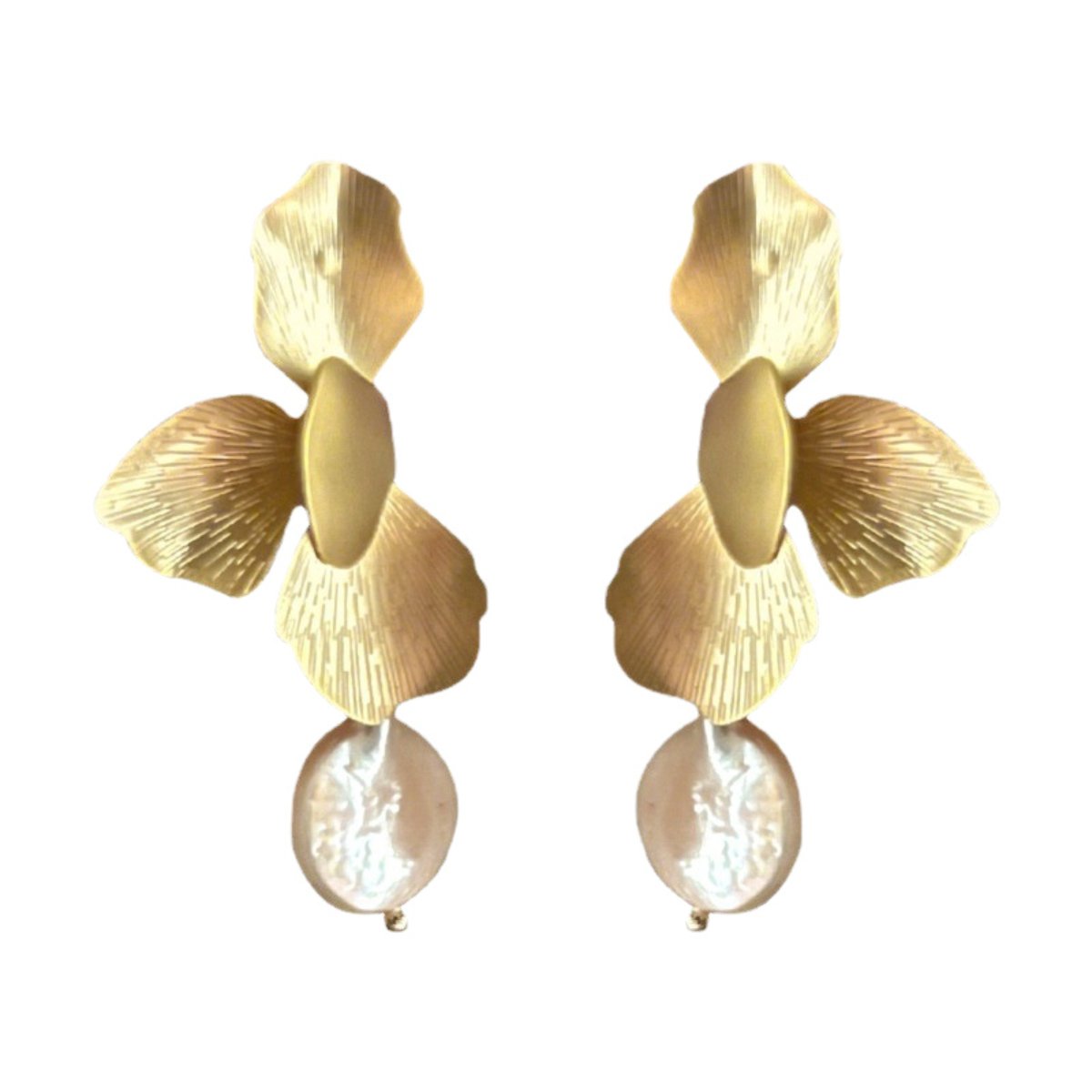 As pétalas douradas trazem um brilho sutil e um charme único, enquanto a pérola elegante adiciona um toque clássico e atemporal. A combinação perfeita entre o moderno e o tradicional, este brinco é ideal para ocasiões especiais e festas ao ar livre, onde você deseja se destacar e impressionar.