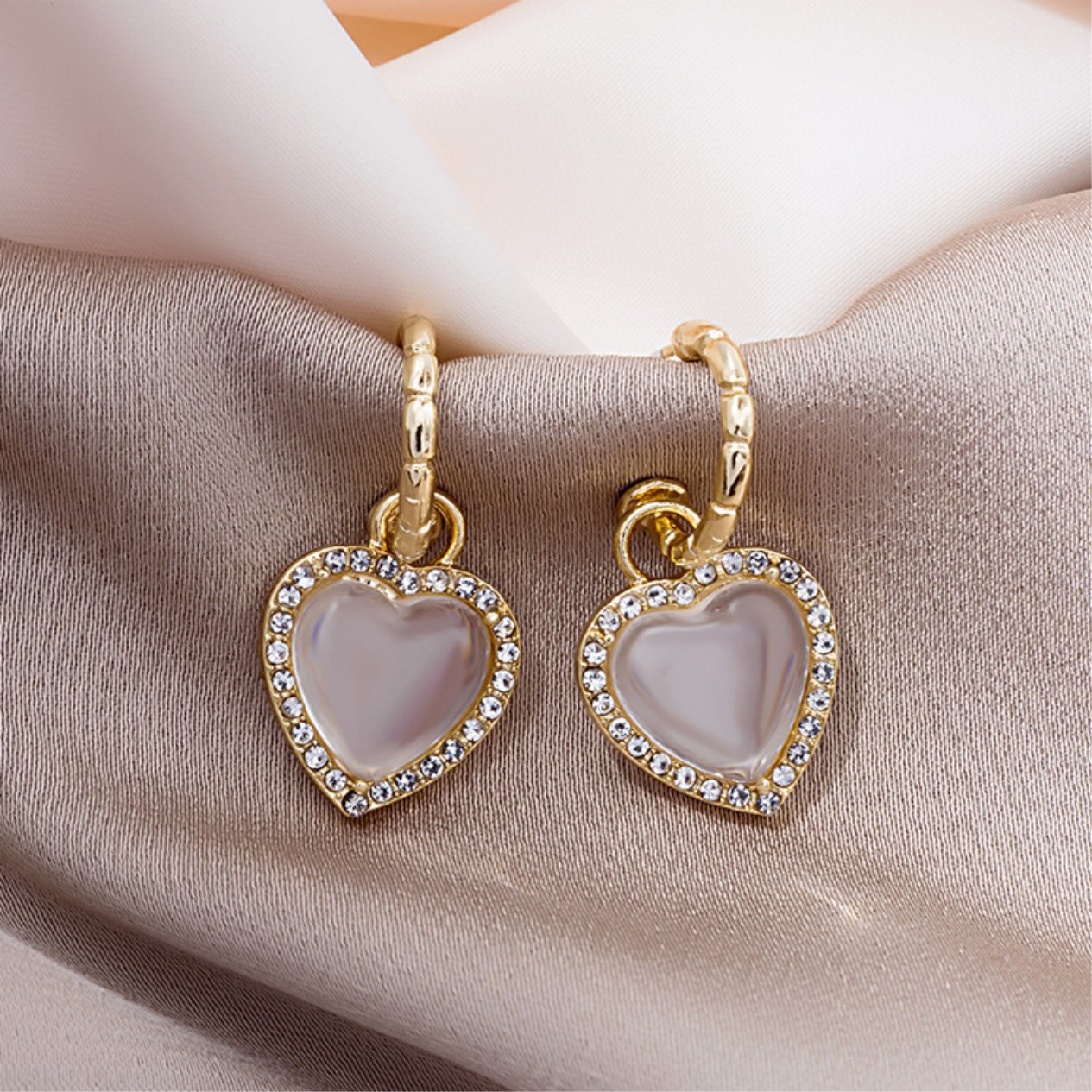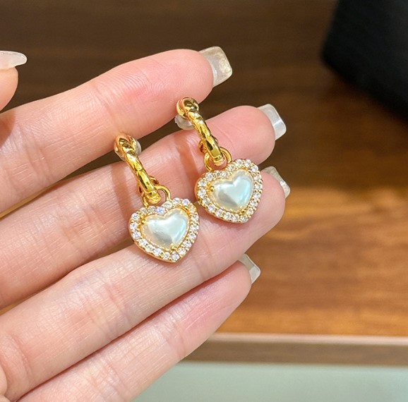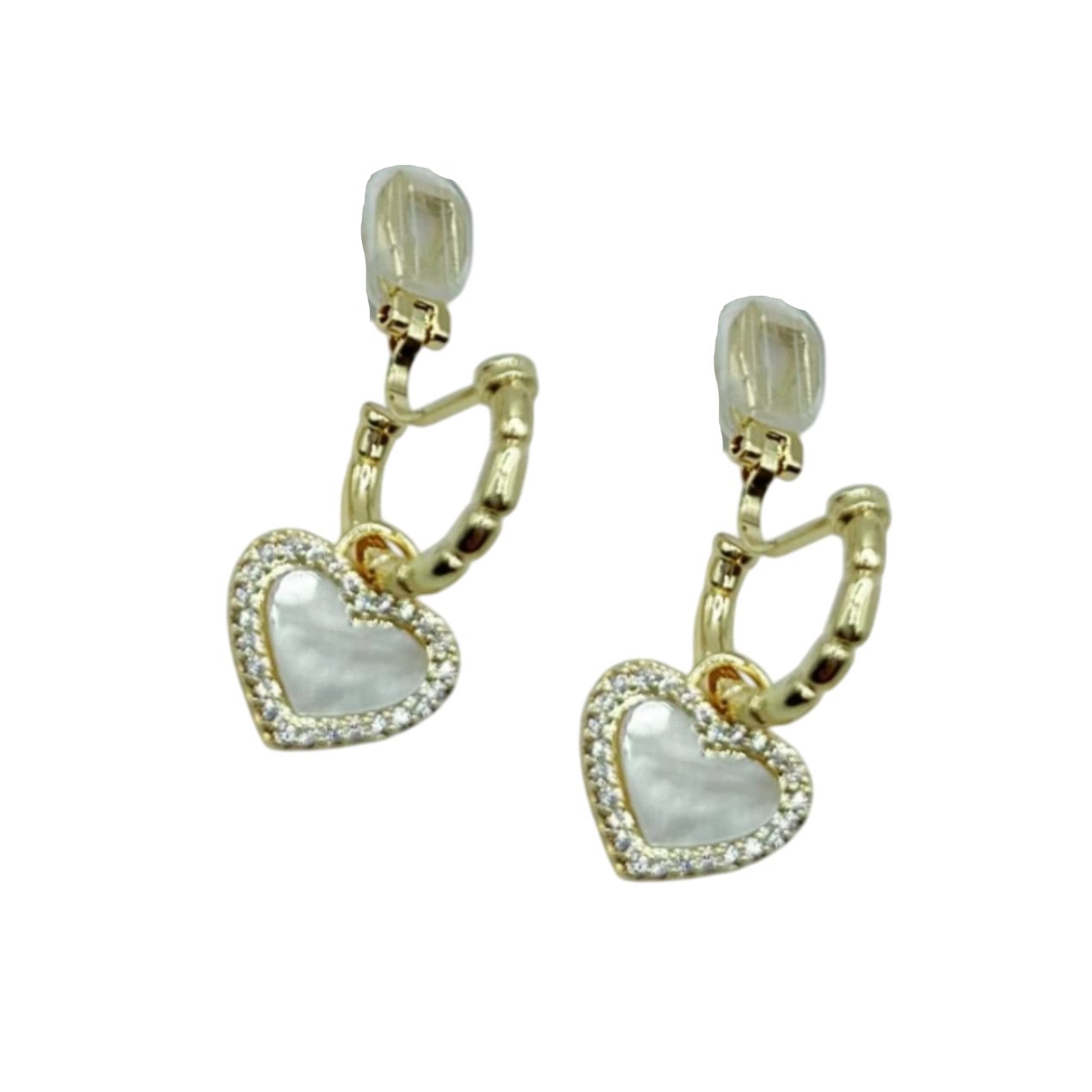 Brinco de Pressão Branco Delicado de Coração na Argola