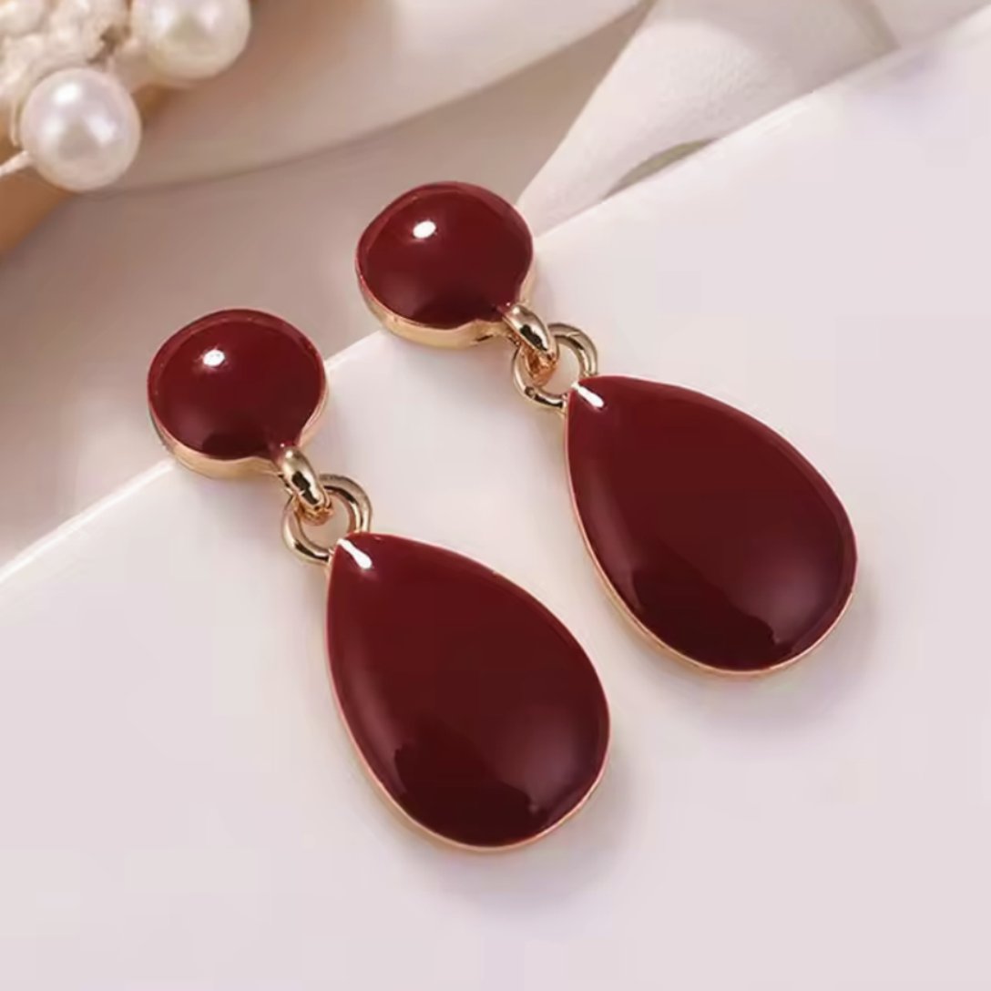 Brinco de Pressão Marsala e Dourado de Gota Delicado