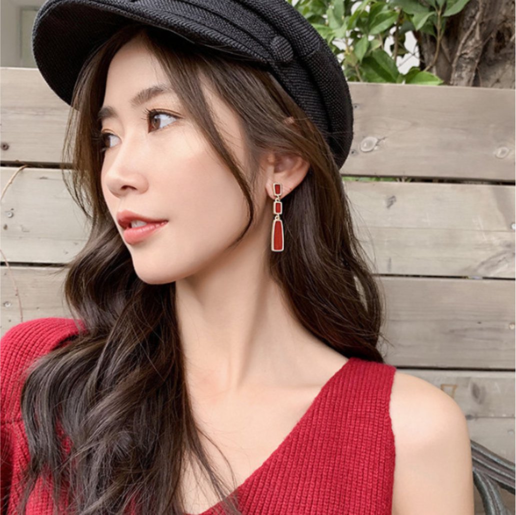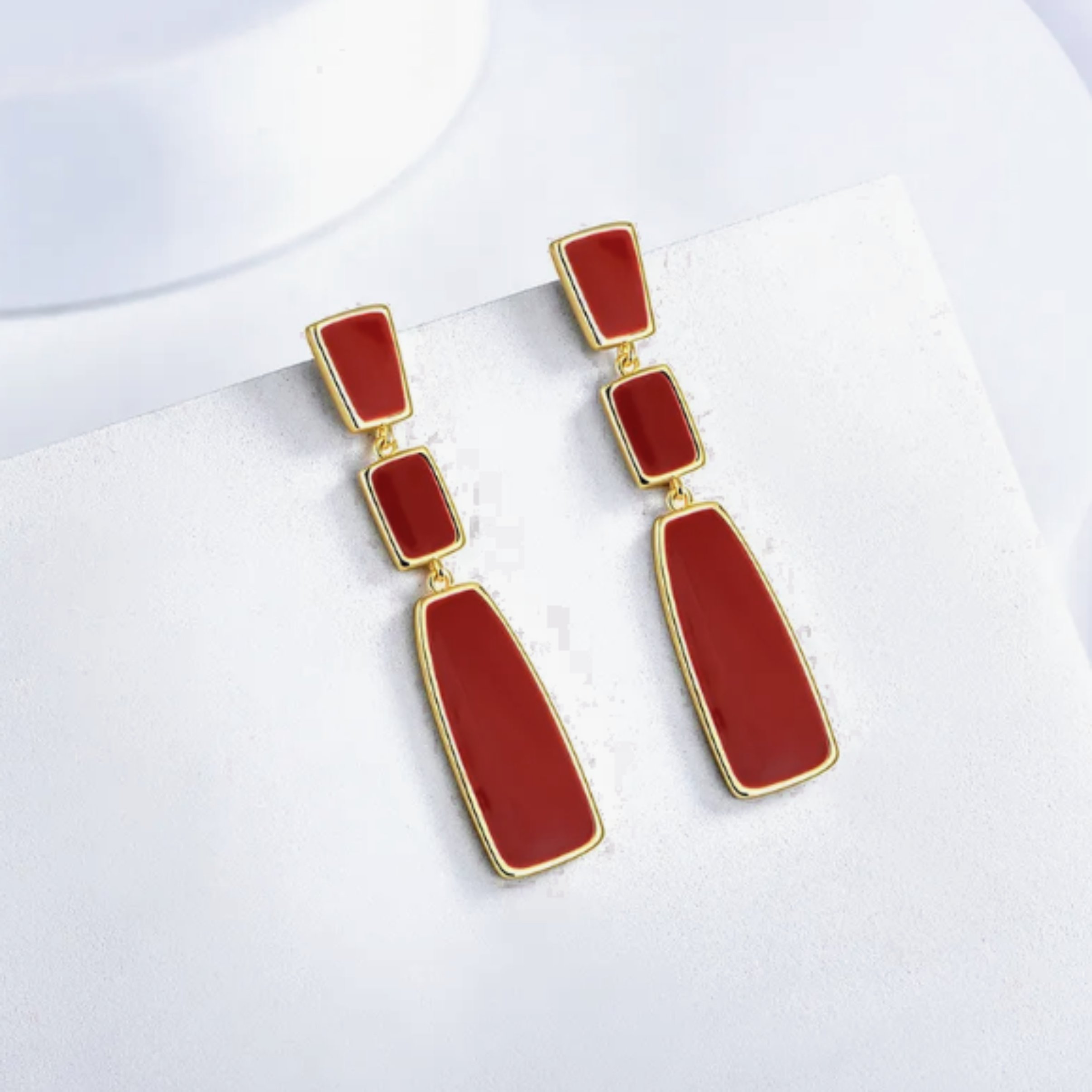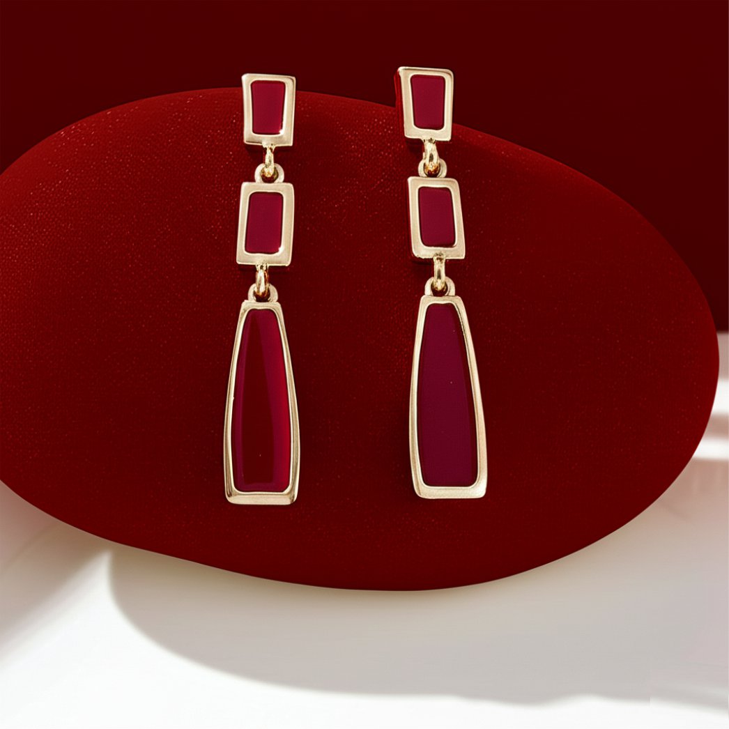A combinação de cores marsala e dourado traz um toque de luxo e sofisticação, enquanto o estilo minimalista garante que o brinco seja versátil o suficiente para uso diário ou para ocasiões especiais. A forma retangular alongada adiciona uma elegância única ao acessório, tornando-o uma escolha ousada e estilosa.