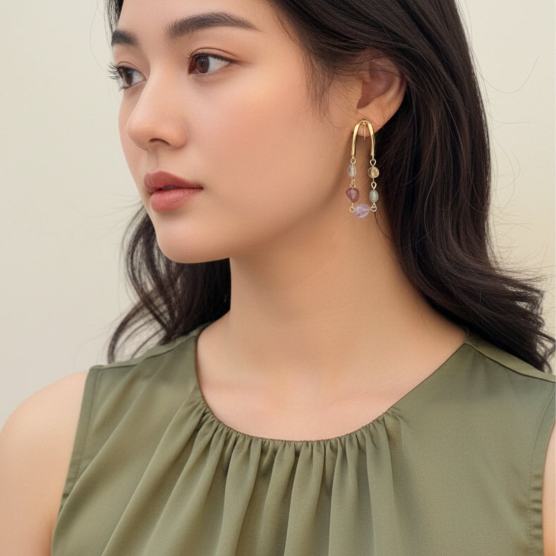 A combinação de tons terrosos e verdes neste brinco proporciona uma sensação de equilíbrio e harmonia, transmitindo uma aura de serenidade e elegância. A delicadeza dos detalhes e a qualidade dos materiais utilizados evidenciam a atenção aos pormenores e o cuidado na criação desta peça única.