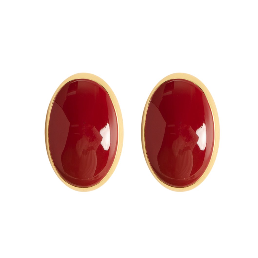 O Brinco Dourado com Pedra Marsala Grande Oval é simplesmente deslumbrante e está totalmente em sintonia com a tendência da cor marsala. Essa tonalidade rica e sofisticada adiciona um toque de elegância e modernidade a qualquer look.