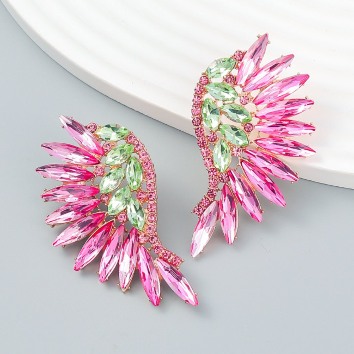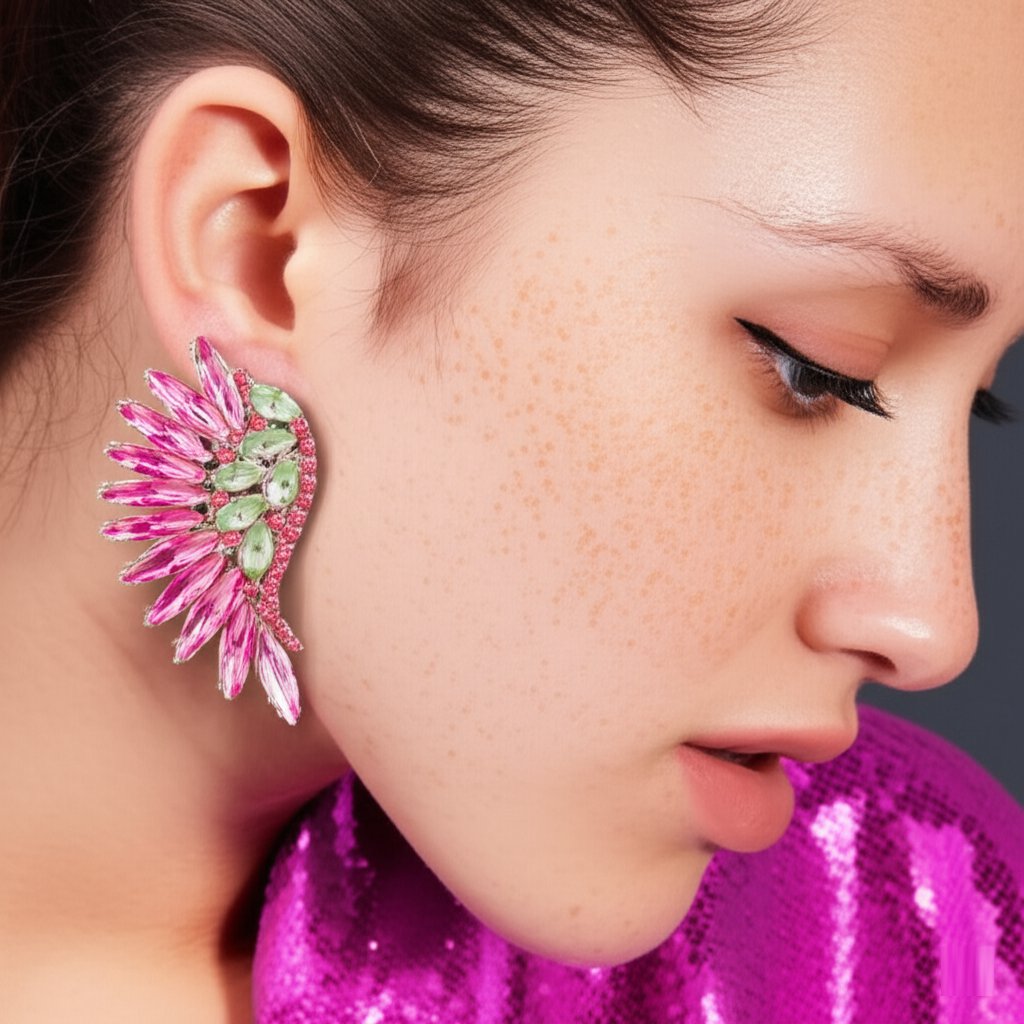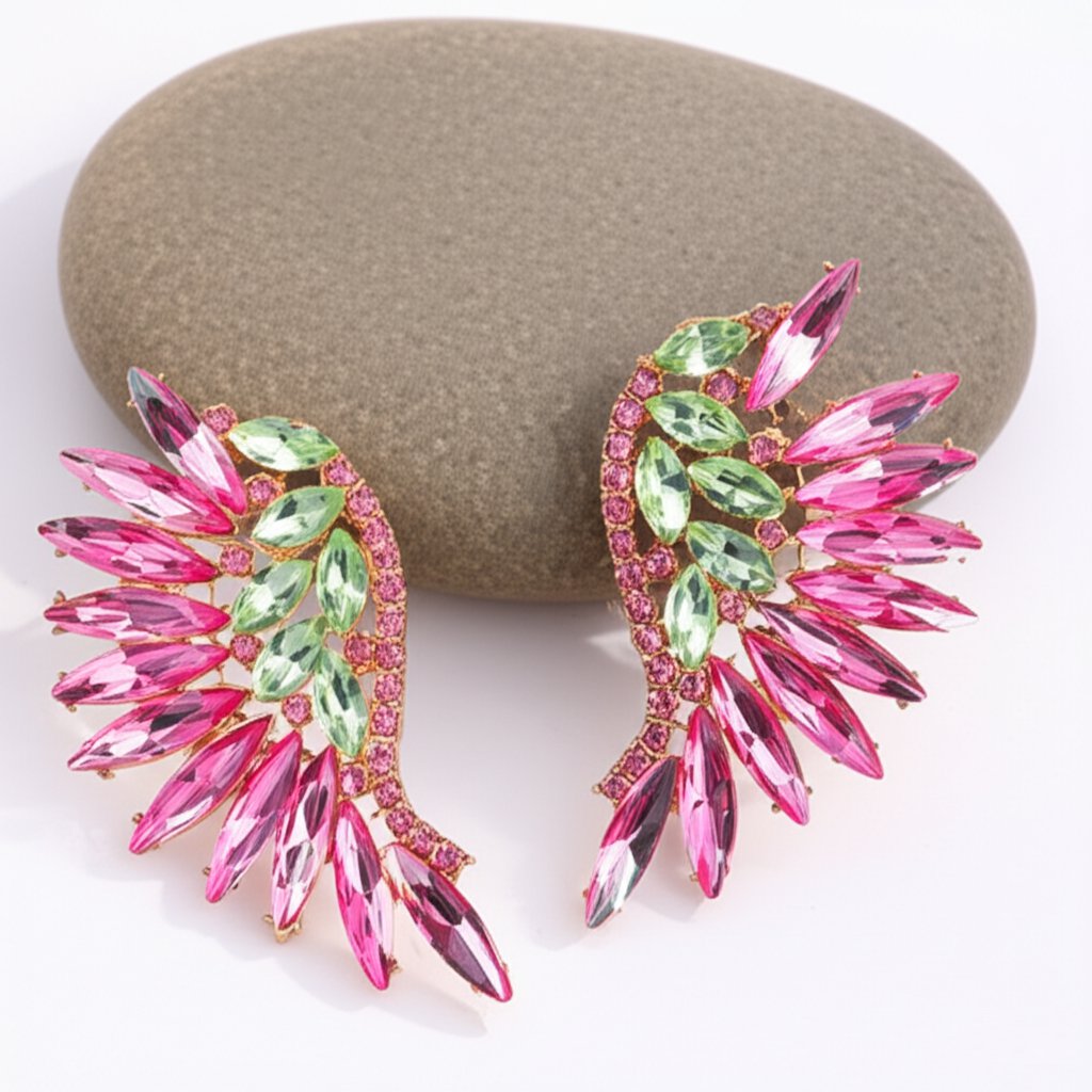 Se você está procurando por um brinco deslumbrante e cheio de estilo para arrasar em uma festa especial, o Brinco Fúcsia e Verde de Festa de Asa de Cristais é a escolha perfeita!