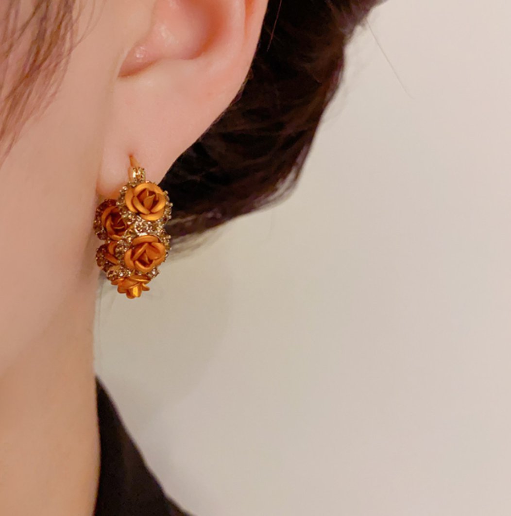 Brinco Laranja de Festa Delicado de Argola de Flores