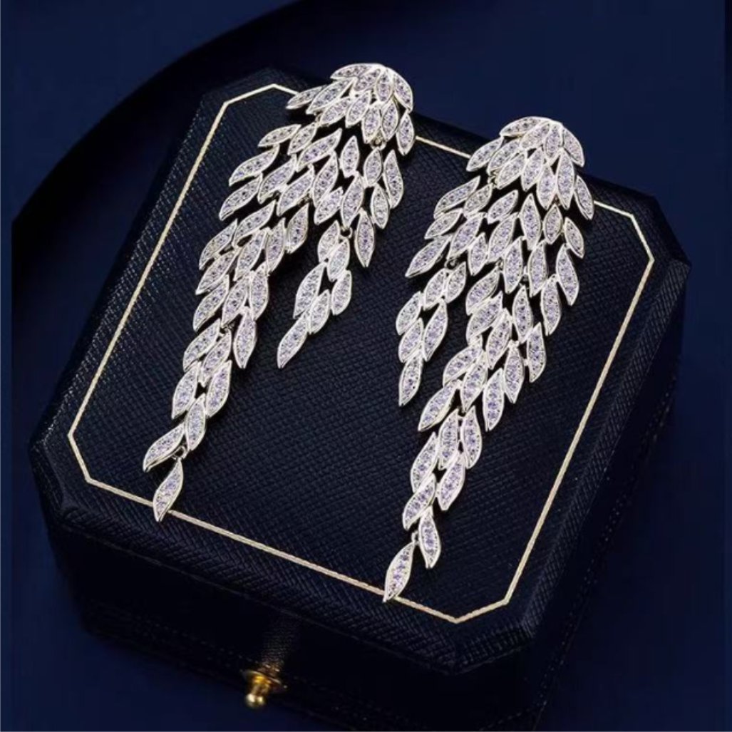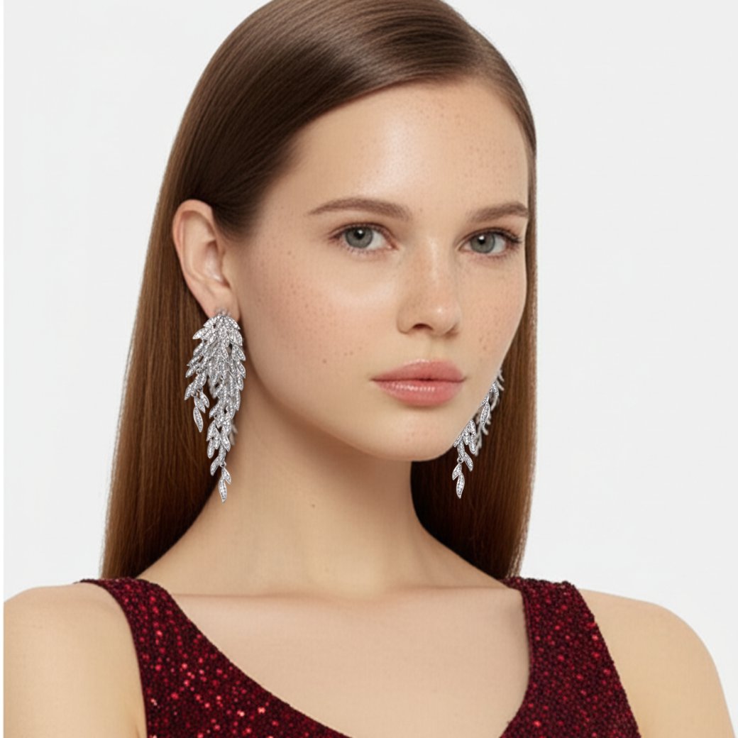 Este brinco de prata luxuoso com zircônias é a escolha perfeita para quem busca sofisticação e elegância em ocasiões de alto padrão. Com um design deslumbrante em forma de ramo de folhas, este acessório é ideal para festas de gala, eventos de prestígio, casamentos, formaturas e outras ocasiões que demandam glamour e requinte.