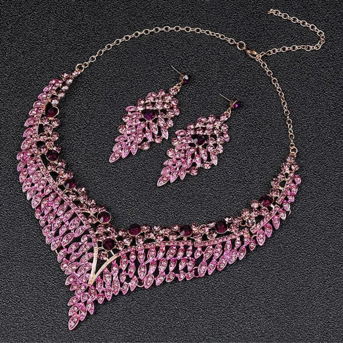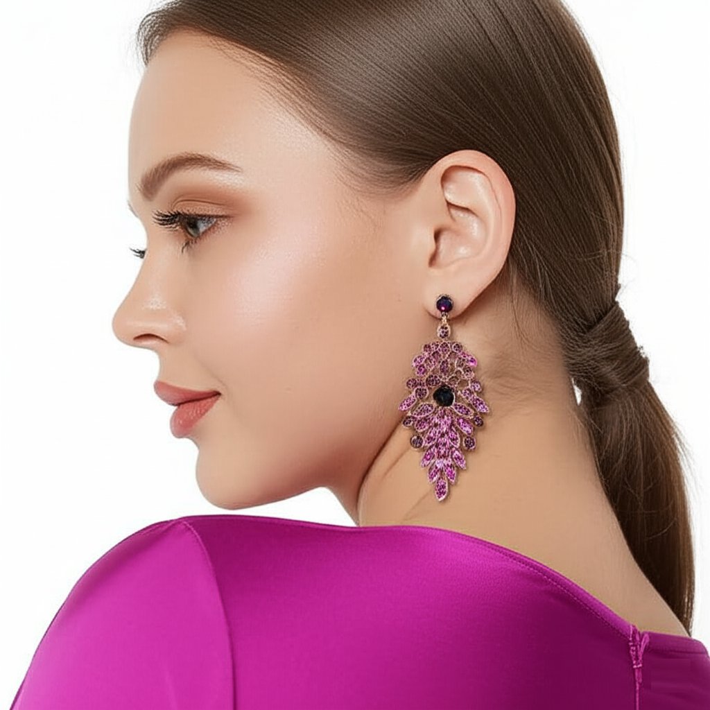 Brinco roxo e rosa de festa grande com colar formatura