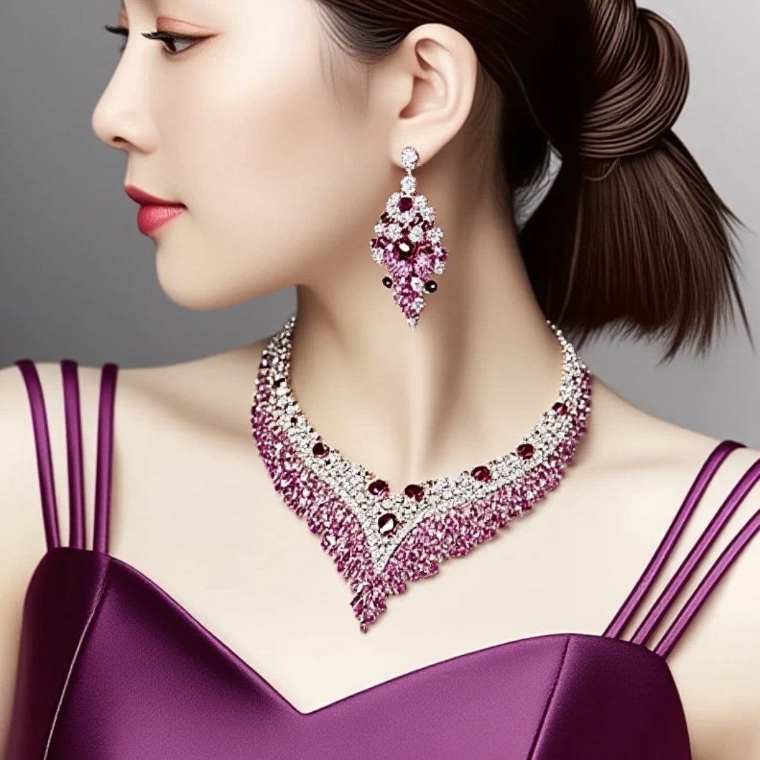 Essas peças são ideais para uma festa de formatura, pois são chamativas e elegantes, garantindo que você se destaque entre os demais convidados. A escolha do brinco roxo e rosa, juntamente com o colar de formatura, mostra sua personalidade forte e determinada, refletindo seu estilo único e sofisticado.