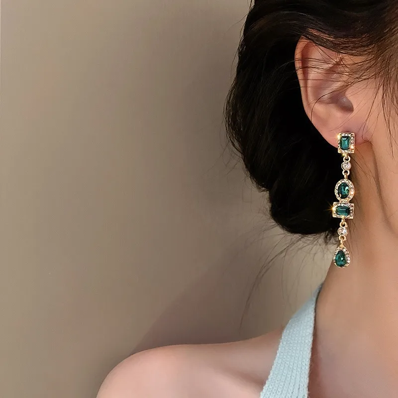 Este brinco verde esmeralda de festa é simplesmente deslumbrante, destacando-se pela sua elegância e sofisticação. Com um design geométrico cravejado de cristais, ele é a escolha perfeita para quem busca um acessório que irradie confiança e estilo em qualquer evento especial.