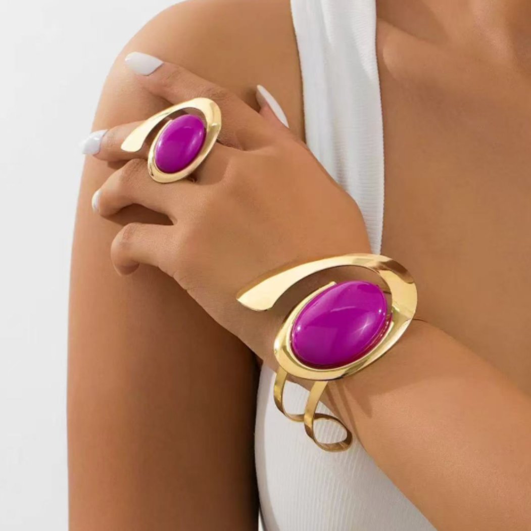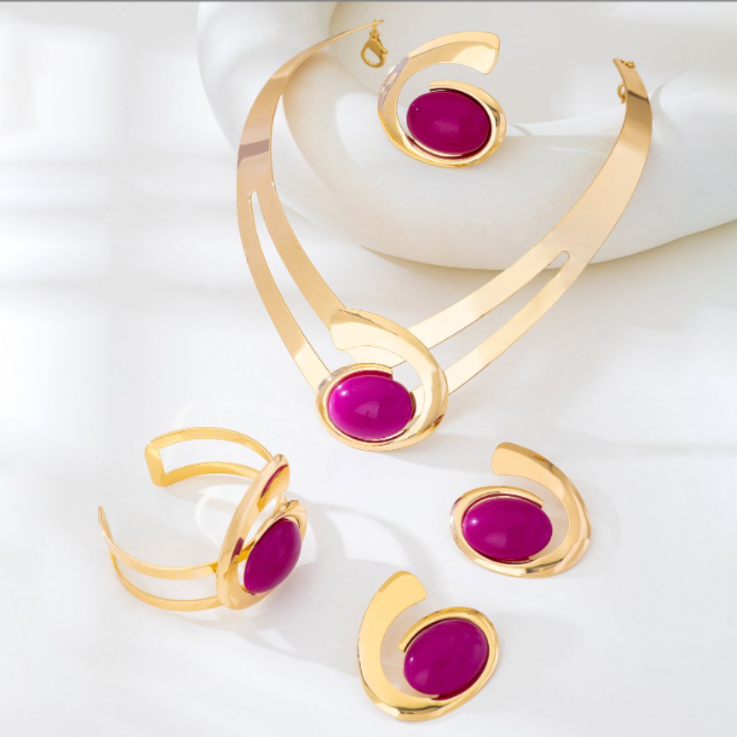 Conjunto de Joia com Pedra Fúcsia