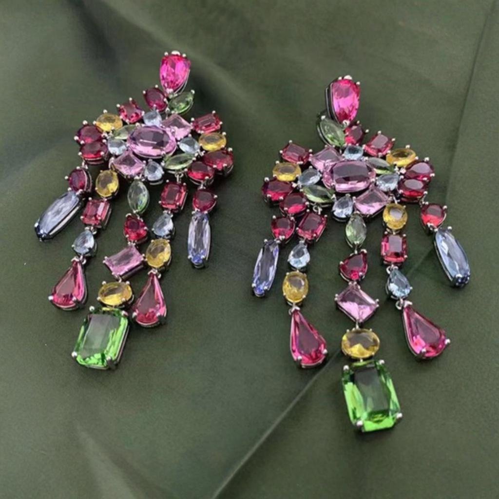 Maxi Brinco Colorido de Festa Rosa e Verde de Cristais