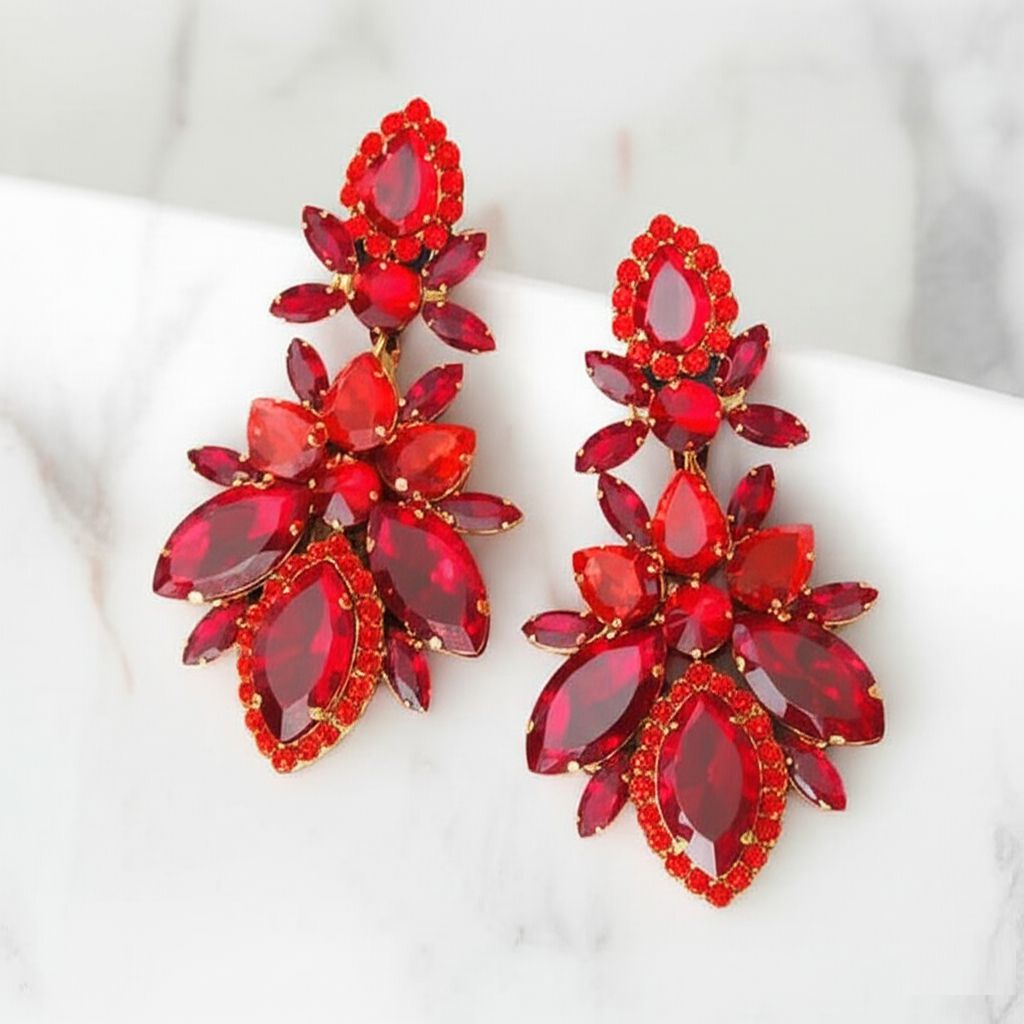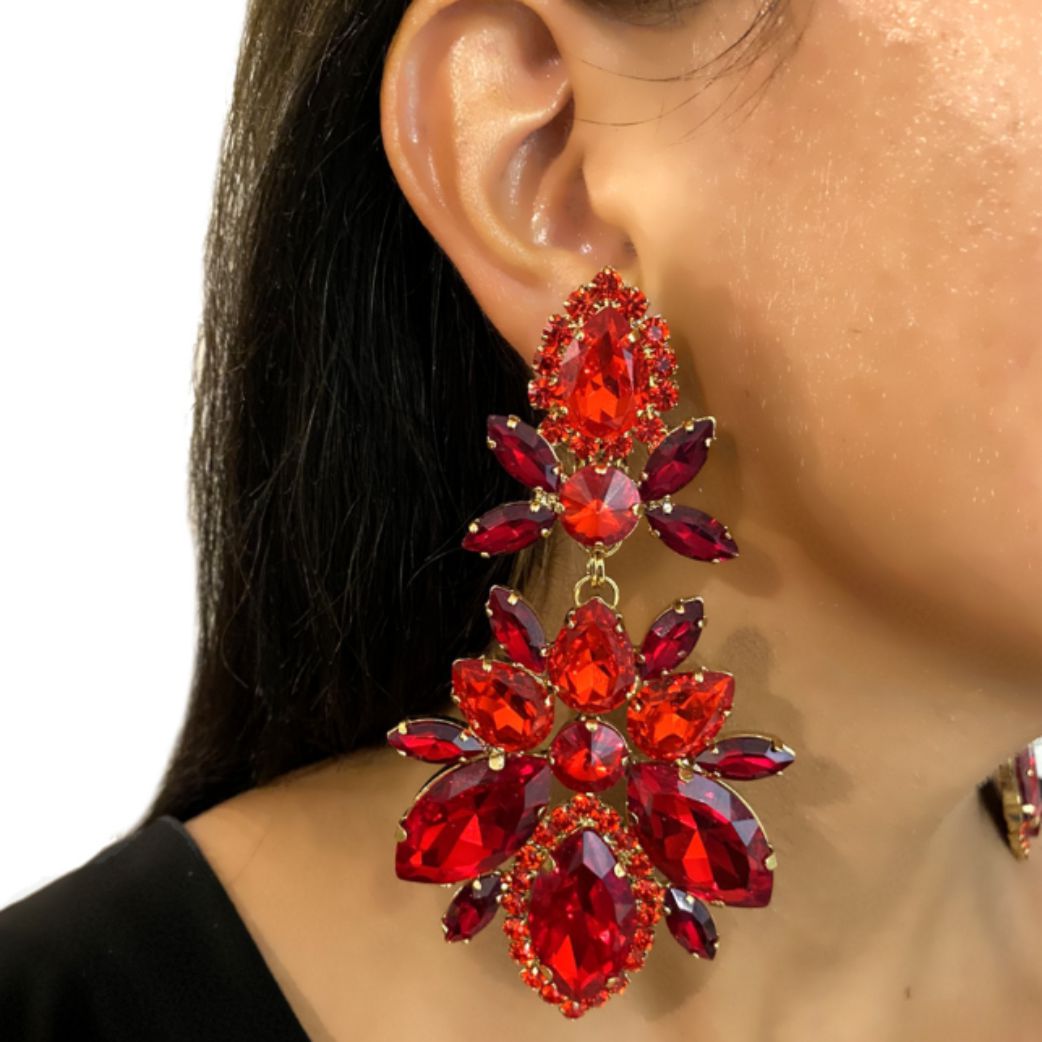 Maxi Brinco Vermelho de Festa de Cristais com Brilho